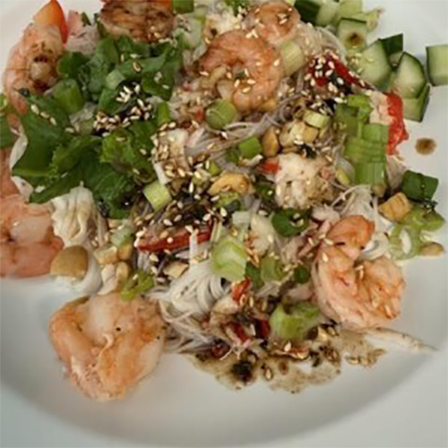 Salade repas (vermicelles, fruits de mer, edamame style asiatique)